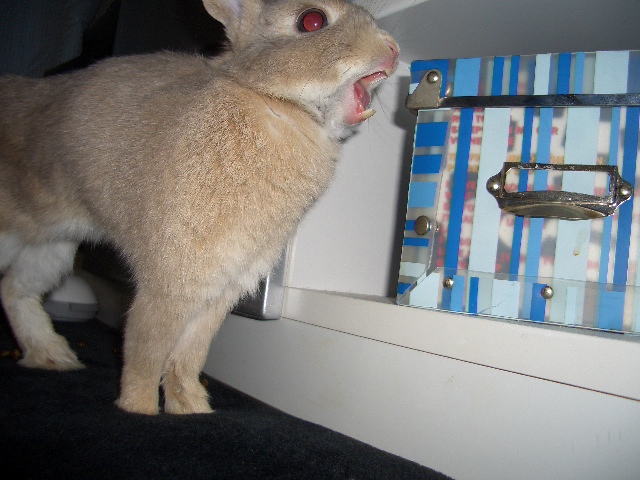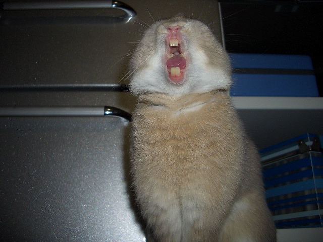 デジカメの中に撮った覚えのない画像がありました。 お見苦しい足が写っておりまして申し訳ない こちらもお見苦しい足が写りこんでおりますが・・・ どうやら「オレのそばでもゴロリンしてくれたー!」という嬉しさから、 ダンナ氏が写した杏太郎のゴロリン画像のようでございます。 なーんか最近の杏太郎を見てると、さくらに似てきた?なんて思ってしまいます。 大きなお口でウマウマしたのダー! 今日はおやつにほじそをちょっぴりおすそ分けです。 久しぶりに食べたほじそは、美味だったようでございます~。 さて続いては・・・杏太郎のあくび、お座りバージョンと伸び伸びバージョン。 もっといいカメラと腕があれば、お口の中や奥歯もバッチリ見えそう! 例によってまたまたピントが合っていませんがーー あくびをしているうさぎさんの顔って、一瞬だけワルワル系のお顔になる! そこがまたうさぎの可愛いところのひとつでもございます・・・