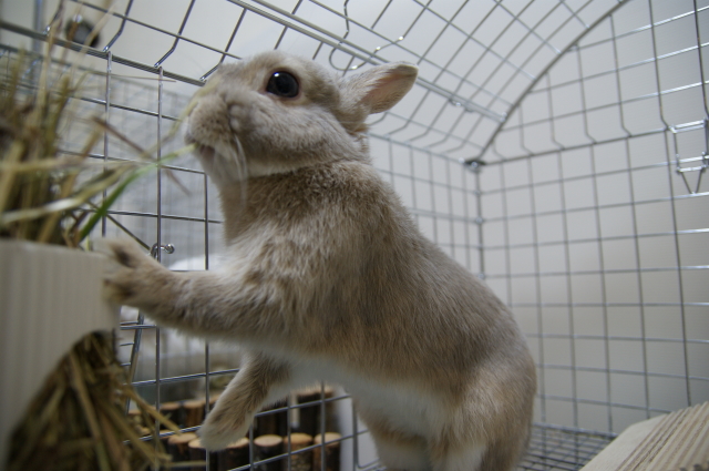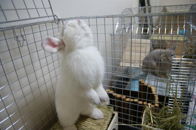 いつもこたがケージの中でドタバタするので、お隣の杏太郎は迷惑そう。。。