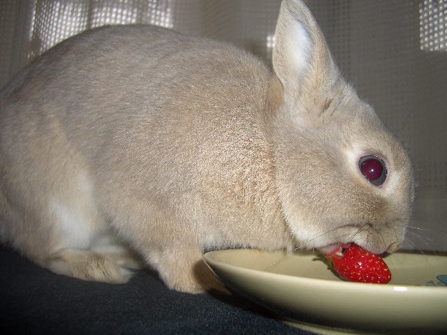 小粒とちおとめが特売だったので、杏太郎くんにも一粒おすそ分け。