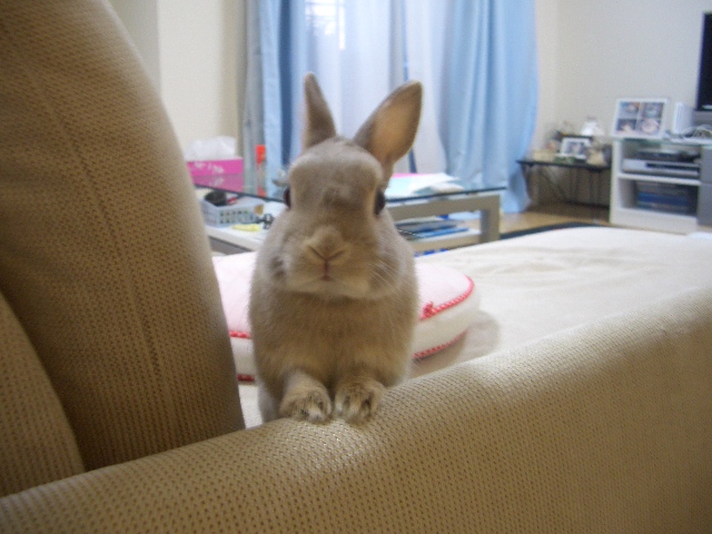 ジトーーーなのダッ! 最近よく杏太郎くんの熱い視線を感じます。 私がソファーから退けば・・・・ オイラが座るのダー! さりげなくも視野の中に入ってきます。 私がちょっと移動すれば・・・・ ジーーーッ。どこへ行くのダー? そういえば↑のようなうさぎ様の姿、懐かしいような・・・? ジトーーーーーッ! キッチンにいる私のことをさくらはよくこうして覗いてました。 さくらの視線の方がなんとなーく媚び度が高いと思いますが・・・。 なんだかんだで、杏太郎くんも実はカマッテちゃんなのね~ ねむねむなのダー。 あとは、豪快にゴロリンってお昼寝してくれれば・・・もっとうれしいのになあ~。