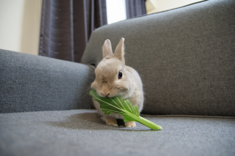 青梗菜をウマウマ中の杏太郎くん。