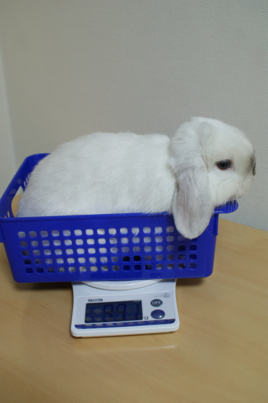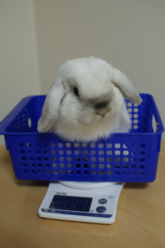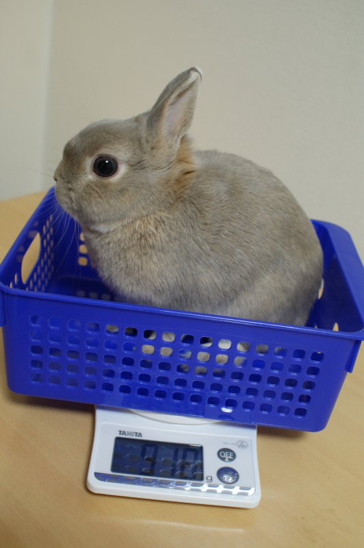 新年となりようやく初ブログ。 今さらながら、今年もどうぞよろしくお願い致します。 2うさとなった我が家の新年、にぎやかなものでございました。 新入りのこたも、まあとにかく元気!わんぱく君です! 日課として2うさの体重測定を毎日しているのですが、 こたが来るまで滅多に杏太郎の体重を量っていませんでした。 ちょっと重たくなったから、1kgくらい?と勝手に思っていたのですが・・・。 私の的外れ~ってな訳で。テキトーはダメですわ。 918gでした(多少の前後はありますが。) ずっと900gちょいだったから、たいして増えていなかったのでしたー。 今月の2日で生後3ヶ月を迎えた胡太郎はというと・・・。 お顔のポイントが家に来た当時より広がり、はっきりしたかな? で。体重の方は・・・? 990gでございます。 順調に大きくなっております。 すでに杏太郎の体重を越しちゃっているしねー。 もう少ししたら、杏太郎の方が弟くんに見られちゃうかも? さてさて。最近ですが、こたも20~30分くらい部屋で遊ばせたりしてます。 垂直ジャンプ、ひねりジャンプ、ダッシュの連続で、 動きが早すぎて、写真に撮ることができません。。。 で、遊び疲れると・・・。 こんな感じなのでございます。 杏太郎と胡太郎は全然違うタイプの性格なので、 一緒にいるとホントにそれぞれの個性が際立っておもしろいです! まっ、お世話は2倍で大変なんですけどね・・・