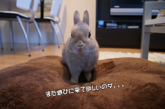 ブログを放置していたら、いつの間にやら11月も半ばでございます。 さて。先日は、年に一度の「うさフェス」が開催されましたね。 日頃から仲良くしていただいているナミさん 、ジャスミンさん(笑)と一緒に とてもいい天気の日曜日に参加してまいりましたー。 相変わらずスゴイ人で、会場は暑ーっ ![]() 恒例の福袋を購入したり、サンプルの行列にとりあえず並んでみたり。 かわいいうさぎさんを眺めたり、会場をウロウロしてました。 気付けば、横浜で撮った写真といえばこれ一枚のみ。 「うさフェス」に行ったのに、ベイブリッジの写真だけ~ ![]() でも。楽しんでまいりましたー。 横浜を後にして、東京大丸に立ち寄りました。 「ねんりん家」のバームクーヘンを購入です~。 もう人気も落ち着いたと思ったけど、まだ行列が出来てるんですね。 つづいては、夜の部って訳で丸の内へ。 丸ビルにて、モツ料理を楽しみながら飲み放題 モツ鍋ウマウマー。相変わらずお料理の写真も撮らず・・・。 ジャスミンさんと会うのは初めてだったのですが、 初対面の気がしなかったわ。違和感なかったものね。 女3人ガールズトークに花が咲きました。おばさんトークが正解だったり? 今年も丸ビルのクリスマスツリーをパチリ ![]() 今さらながら、みんなでツリーの前で記念撮影してくればよかったね・・・。 まだまだ飲み足りなかったけど・・・丸の内を後にして東京駅へ。 もっともっとおしゃべりしたかったけど、ジャスミンさんとはここでお別れ。 次は、終電まで?オールナイト?ジャスミンさん、どうもありがとう~! またよろしくお願いしますねー ![]() 福島から参加のナミさんには、我が家にお泊りしていただきました。 我が家に着いてからは、ダンナ氏と杏太郎くんも交えて二次会。 またまた何にも写真を撮っていない訳で・・・。 ナミさん、遅くまで 付き合ってもらっちゃってスイマセンでした。ナミさんの来訪で杏太郎くんは、かなりはしゃいでおりました。 もっと人見知りするかな?と思っていたのですが・・・ ナミさんの膝に上ってみたり、スリスリぺろぺろしてみたり。 うさぎさんが好きで優しい人が分かるんだね~! 翌日は、ナミさんとお別れするまで調神社に出かけたり、 ランチをしたりと浦和・大宮あたりをブラブラ。 ナミさんが帰った後の我が家での杏太郎くんは・・・ ナミさんがお座りしていたクッションから離れず・・・。 辺りをきょろきょろしたり、クンクンしてみたりとちょっと寂しそう。。。 すっかりナミさんのことが気に入っちゃったご様子で。 しばらくクッション周りから離れず仕舞いでしたもん。 ナミさん、2日間どうもありがとうございました。 いっぱい歩かせちゃってお疲れだったでしょう・・・。 何のお構いもできませんでしたが、またぜひ遊びに来て下さいね! 杏太郎共々、お待ちしておりますよ あっ、ダンナ氏もねっ!改めまして、ナミさん&ジャスミンさん。楽しい時間をありがとうー。 来年といわず、いつでもお会いできることを楽しみにしています ![]() PR |