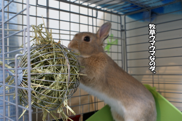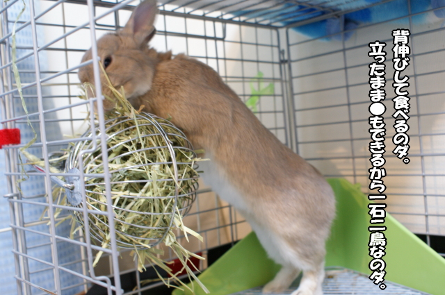 こんな風にトイレから背伸びして牧草を食べることが多い杏太郎くん。
