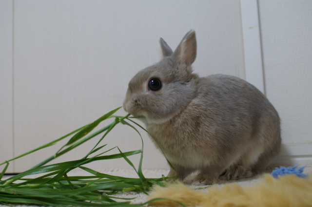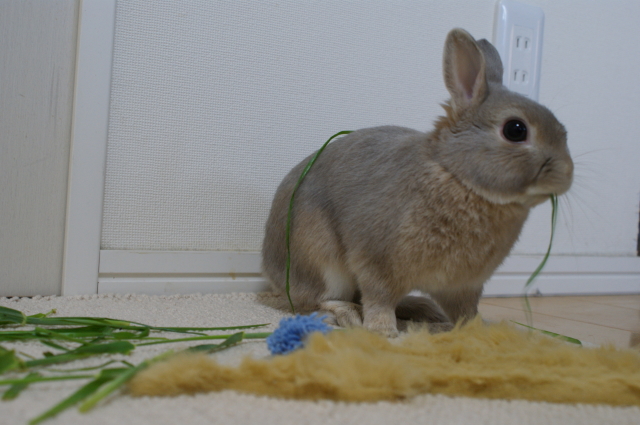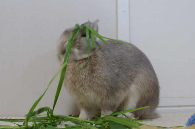 乾牧草もいいけど、たまに食べる生のお味は格別だねー。杏太郎くん