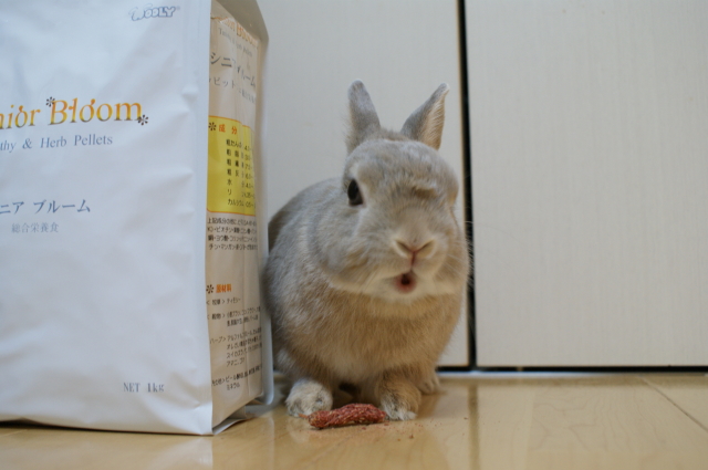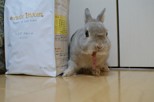 いつの間にやら、もう2月。本日は暦の上では春にあたる立春ですね。 「うさぎさんの●は、みんな普通に素手で触るよー!」 職場でそんな話をしてたら、ドン引きされてしまいました。。。 だって2うさ飼いのあの!梅○アンナさんだって、●は素手って言ってるじゃないの! それを知ってから、勝手に梅○アンナさんの好感度がアップでございます。 風に~吹かれて~~♪なのダ! 基本的によく私が聴く音楽は、オールディーズと東京事変。 そしてずーっと憧れの姐さん率いるバービーボーイズ。←復活です! そんなCDケースの中に紛れていた猿岩石のアルバム。何年前? 買った記憶はないけど、保管されてたってことはーーー 当時の猿岩石人気の影響を受けて購入していたのでしょうね。 きっと今の若い子達は、有吉氏が歌を歌ってたなんて知らないんだろうなあ~。 大きなお荷物なんなのダー? すぐにお荷物チェックにやってくる杏太郎くん。 オイラのウマウマなのダー! 注文していた牧草とペレットが届いたのでした。 例によって念入りなアゴすりすり攻撃です。 オヤツも買ってもらったのダー! 普段からお野菜とかちょっぴり果物を食べていることもあって、 あまり市販のうさぎおやつを買ってあげないので、たまにはね~って訳で。 このおやつは、牧草といちごからできているもの。 パリポリしてウマウマなのダー! やっぱり人もうさぎもおやつは大好き、うれしいものですよねー。 今回は、うさフェスでサンプルをもらった際、杏太郎に好評だった「シニアブルーム」を購入。 現在のペレット、主に「バニセレ」がメインで、 サブに「ピュリナ」と「コンフィデンス」 そのような感じなのですが、徐々にこちらをメインにしていこうかしらと思いまして。 ただね~。この「シニアブルーム」の袋には、密封チャックが付いていないので 乾燥剤入れてジップロックに入れ替えしないとならないかも・・・