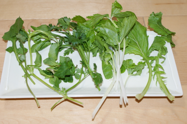 左から「なずな・はこべ・ミント・イタリアンパセリ・ホワイトセロリ・すずな・すずしろ」