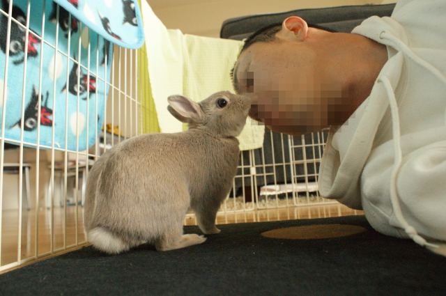 陣地を乗っ取られた杏太郎くんは、ケージの中に避難してますー。分かる?