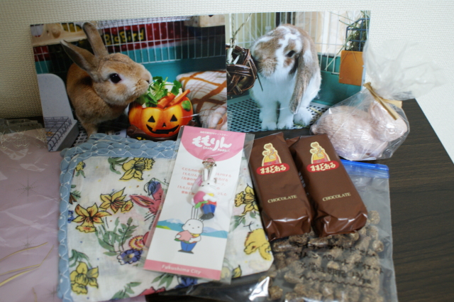 お荷物が届いたのダー!杏太郎くん、インターホンの音に反応してたっち中でございます。 バリバリ、ガサガサと荷物を開封していると・・・ 気になって仕方がないのダー!早くオイラにも見せるのダー!と言わんばかりの熱い視線。 気になるよね~!届いたお荷物の正体は・・・ 写真撮ろうとしてたら、横を通過するオジャマ虫さんが~ ![]() 日曜日に参加したうさフェスでゲットした福袋とサンプル戦利品の数々。 杏太郎くんへの貢物、持ち帰るのも大変なので配送してもらったのです。 これは全部オイラのものなのダー!杏太郎くんの好きな朝採りティモシーもあるね~。 そんな訳で、さっそくご賞味でございます。 いつもより高級なお味がするのダー!あっという間にモリモリと完食しちゃいました。 ![]() ![]() ![]() さてさて。日曜日ですが、うさフェスに行って参りました。 今年は去年お会いすることができなかったナミさんと一緒に参加です。 あっ、あと荷物持ち係りとしてダンナ氏も同行です。 うさフェスでおなじみの肩乗り警備兎さん 今年も警備お疲れ様~。相変わらず大人気でしたねー。 警備兎2号ちゃん 写真撮らなかったけど、今年は警備兎見習い中のおチビちゃんもいましたー。 ウーリーのブースの所にいたカワイ子ちゃん 可愛いハーネス着けてたからオンナノコちゃだったのかな? うさコレとかの写真も撮ったんだけど、ブレブレ画像ばっかりで・・・。 デジカメでなくデジイチ持って行けばよかったなーと思っちゃいました。 去年よりもアーティストブースの出店も増えていましたが、 まあとにかくすごい人と熱気で・・・こんな季節だというのに汗だくです。 会場にいたうさちゃん達もアチチだったよね。。。 会場では、ようこさんやかまーさん、なりこさんやおかんさん、もこさん&夢空くん、 ヘポコさんご夫妻などなど・・・お会いできましたが、挨拶程度しかできずにすみませんでした。 熱気ムンムンの会場を後に、赤レンガ倉庫までぶらりと移動。 ちょっぴり見学してお茶してから都内へ電車移動です。 途中、有楽町イトシアに寄り道してクリスピー・クリームドーナツを購入。 ↑なんか微妙なセレクトな上、美味しそうに撮れていないし~。 そろそろ人気も落ち着いた頃かなと思ってましたが、相変わらず行列ですね。 1日歩きっぱなしで喉もカラカラって訳で、夜のお楽しみ会場へと! ここからはオトナの時間でございました。 美味しいお料理とお酒。もちろんもちろん飲み放題でございますよー ![]() 疲れた時の一杯ほど美味しいものはございません。 いっぱいおしゃべりして、飲んで食べて・・・あっという間にナミさんとお別れの時間。 丸の内のツリー の前で、ナミさんとパチリっ!とっても可愛らしいナミさん、お付き合いいただいてどうもありがとう。 これに懲りませず、ダンナ氏と杏太郎共々今後ともよろしくです! ナミさんからのプレゼント ハル君とフユ君の可愛いお写真に、うさハンカチにうさキャンドルにもろもろ。 ままどおるもウマウマでしたよ~。どうもありがとうございました。 年に一度のうさフェス。あっという間に終わっちゃいました。 うさ飼いさんの大イベント、また来年のお楽しみですねー。 PR |