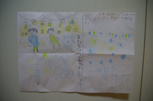 一緒の職場の子の息子のこたろう君からこたろうへのお手紙です。