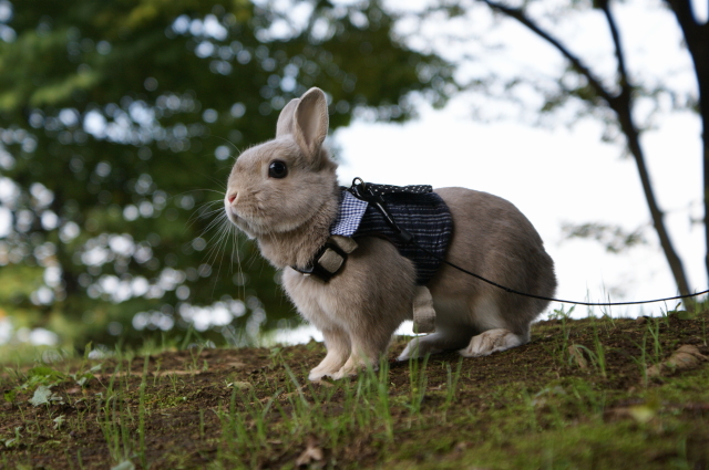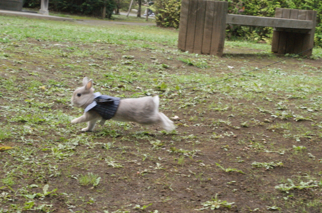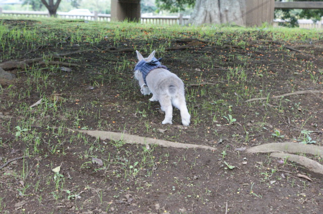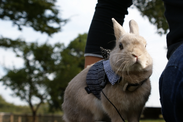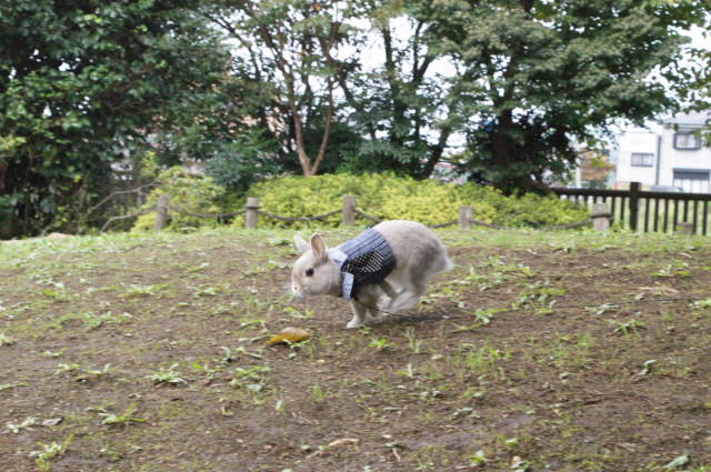 秋といえば、うさんぽの季節でございます。 気候も良いし、今秋の初うさんぽへと行って参りました。 いつものネクタイハーネスで参上でございます。 キリリなのダー! 一張羅を身にまとえばイケメン兎の出来上がりです。 ハンサム☆スーツも真っ青でございます。洋服の青山製ではございませんが・・・ デジイチを手にしたからには撮りたかった走る杏太郎くんの姿。 微妙です。非常に残念です。。。 後ろ姿もこれまた残念でございます。 せっかくの横からの走る姿。くやしいですーー。 ブレブレ画像ばかりでございますもっと上手に撮れるようにならんとです。 キレイキレイ中なのダー! 穴掘りした後はお顔をクシクシ。 その前足には土がいっぱい付いていると思うけど?まっいいか。 うさぎらしい1枚なのダー! ↑ダンナ氏が撮ったショットでございます。 なんだか杏太郎くんが凛々しく見える1枚です。 やっぱりお外の方が毛色とかもきれいに写すことができますね。 で、で、最後の1枚となりますが・・・ 杏太郎くんのちょっぴり恥ずかしい?ショットでございます。 全世界に発信しちゃいましょうね! こんな写真出すなんて、うさ権の侵害なのダー! マニア必見の放尿シーンでございます。 結構勢いよくジョーっと出るものですねー。 そんなこんなで秋の1日を満喫した杏太郎くんなのでした。