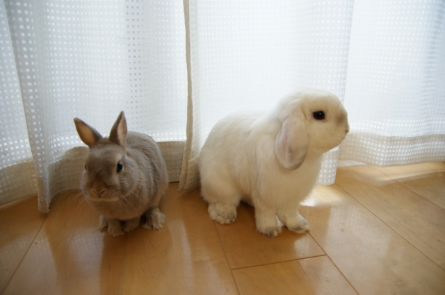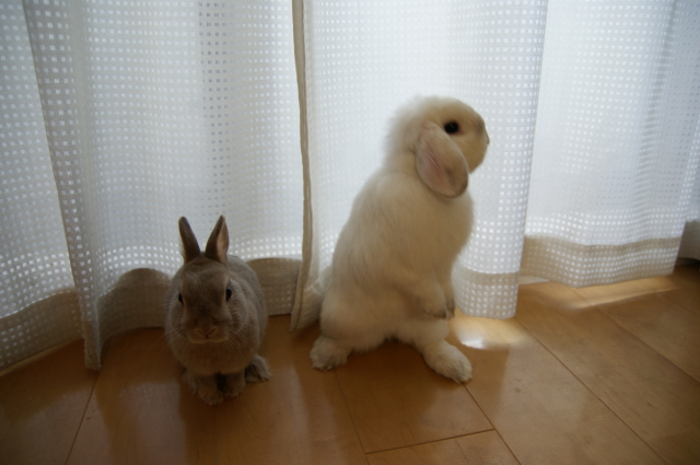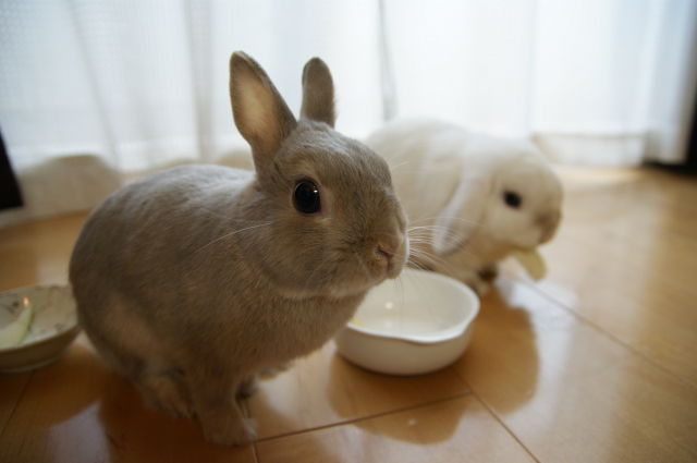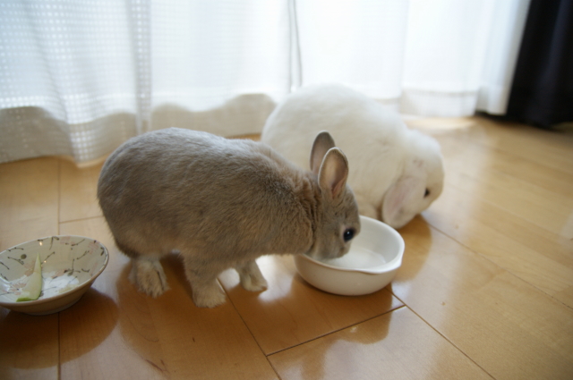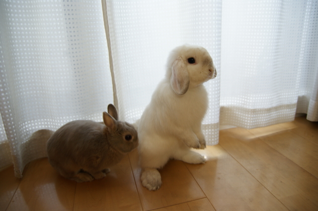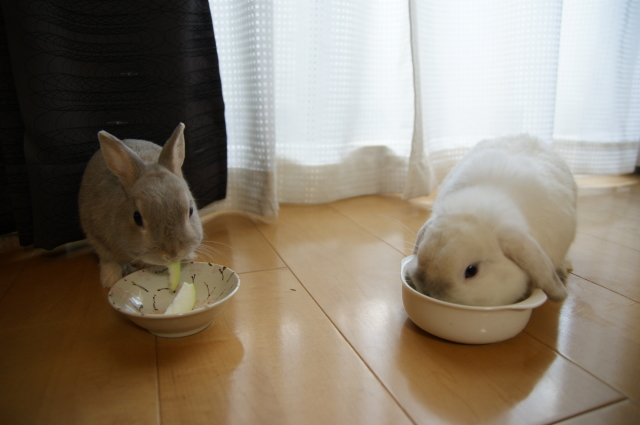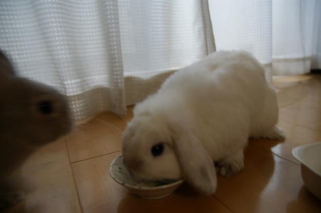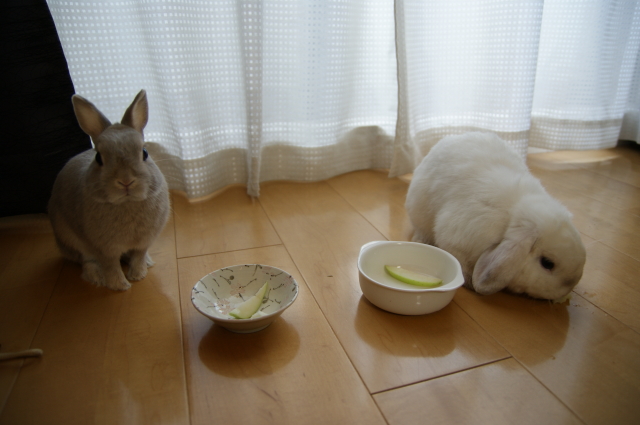 そして9月1日は、さくらのお誕生日でもあります。 彼女が存命なら、9歳を迎えていたんだと思うと・・・ なんだか切なくなってしまいます ![]() でもー。切なくなんてなっていられないものです。 ある意味で運命的な出会いをしたこのお方。 2日で、生後11ヶ月を迎えます。来月で1歳でございます ![]() こたはHORの出身だけど、生まれはバニファの本店 (サイトの子うさぎ情報、2009.10月にベビベビ時代のこたが載ってるよ。) そんな訳で、北陸は石川金沢生まれのこたなのでございます。 そしてさくらおば様の生誕祭に便乗ってわけで・・・ 2うさ一緒に をおすそ分けしてあげました。種類は忘れちゃったけど、青りんごをウマウマです。 下にタオルでも敷いておけばよかった。。。床がビチャビチャ ![]() カメラに近づいてきた杏太郎。 「あいつ、食べ方きたないのダっ!」とか言っていそう ![]() そしてこたの空っぽのお皿が気になる杏太郎。 そしてそして。こたは、杏太郎のりんごの残りを食べちゃうし~ こたー意地汚いぞーーー! ウマウマ後は、調子に乗って ツーショットでも撮りましょうかってことで。やっぱりロップって、ちょっぴりわんこっぽく見えるー。 2うさ揃ってたっちしてくれたらいいのになーとか飼い主は思ってみたり。 やっぱり立ち耳も垂れ耳も可愛いわ と改めて思います。・・・あとは私に一眼 の腕があれば、もっと可愛く撮れるのに~PR |