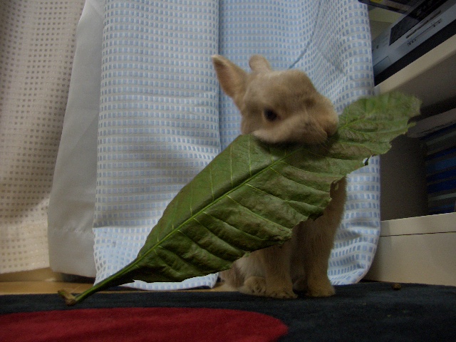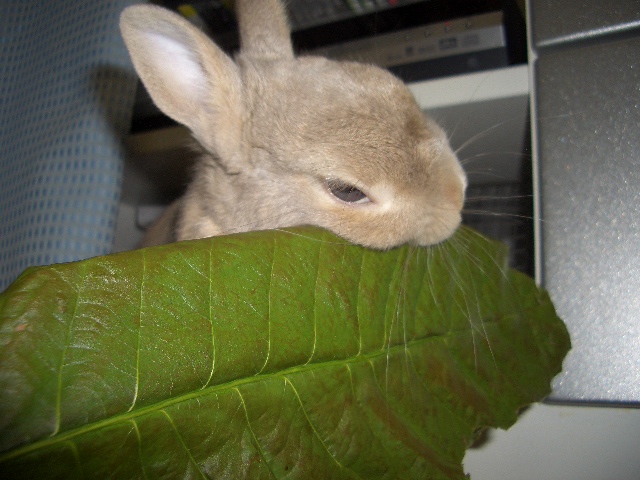 先日のうさぎ浴衣の会で、かばママさんよりいただいた立派なびわの葉。 杏太郎もみんなと同様にびわの葉が大好き お日様の下でちょっぴりパリパリにさせた葉っぱをどうぞ召し上がれ~ びわの葉さん、お久しぶりなのダー! 杏太郎のお顔よりも大きく、体長くらいはありそうな立派なびわの葉。 ウマウマ格闘中なのダー! ちっちゃなお口で一生懸命にウマウマする杏太郎。 びわの葉は、ホントに大好きだもんねー。身体にも優しいしねっ かばママさーん、ありがとうございますなのダー! たくさん頂いたから、残りはもっとパリパリにして大切に食べようね。 かばママさん、どうもありがとうございました。杏太郎も大喜びです びわの葉を一生懸命にウマウマしている杏太郎を動画でー。