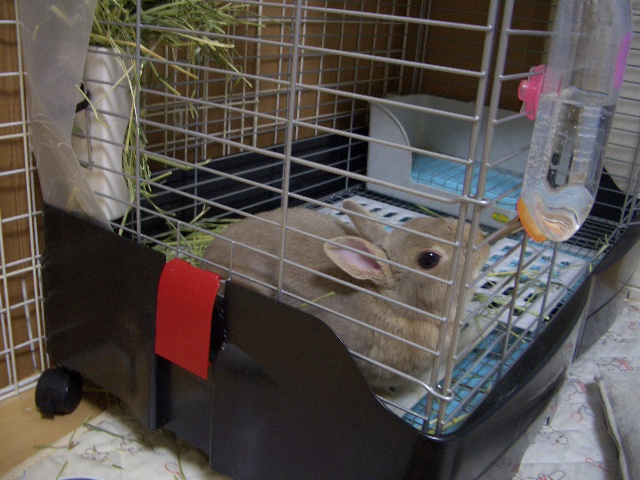 お水ゴクゴクなのダー! 杏太郎くんがケージにいるのって珍しいかしら? ステージとかケージ内に付けていたものを撤去。ついでにケージとの連結サークルも。 トイレと牧草にお水という超、超シンプルなケージレイアウトとなってしまいました。 ケージ内にいることの方が短いし、使用しないものを置いておいてもって訳でして。 夜寝るときと留守番以外はリビングで自由に過ごしています。 ケージ=寝るところなのダ、ケージ=布掛けて目隠ししたら静かにするのダとの位置づけ。 良し悪しは別として1うさ、人×2で一緒にゴロリンしたり、マッサージをしたり、 おのおので自由気ままに時を過ごすのでございます。 バジルうまうまなのダー! ハーブ類を食べた後のお口は、ほんのりいい香りがして癒される やっぱうさぎさんのお口って、いつ見ても可愛いわ~ 体にキノコでも生えてきそうなジメジメの梅雨は、人もうさぎさんも体調崩しやすい季節。 体調には注意しましょうねー!